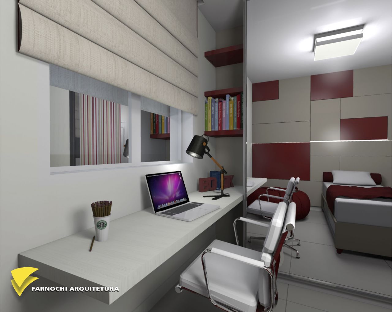 Quarto de menina que ama vermelho.